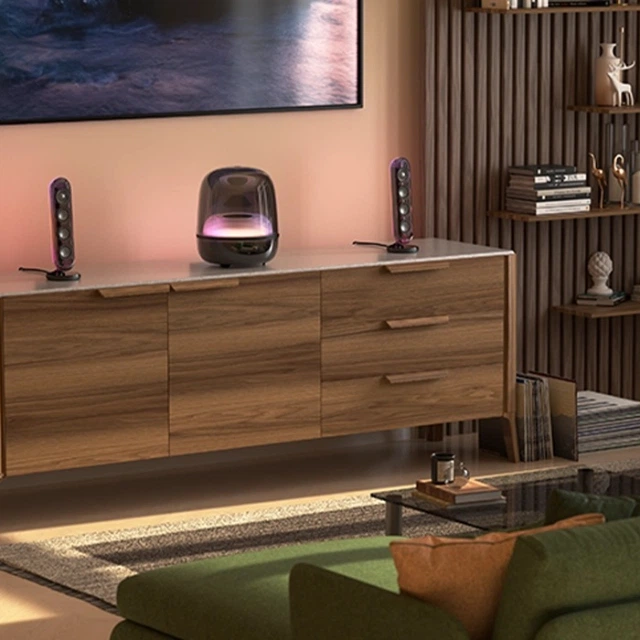 Динамическое освещение SoundSticks 5 превращает прослушивание музыки в настоящее аудиовизуальное шоу. Яркие цвета и плавные световые эффекты подчеркивают ритм композиций. Переключайтесь между успокаивающей и энергичной подсветкой, чтобы свет и тень полностью резонировали с настроением музыки.