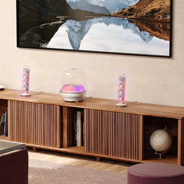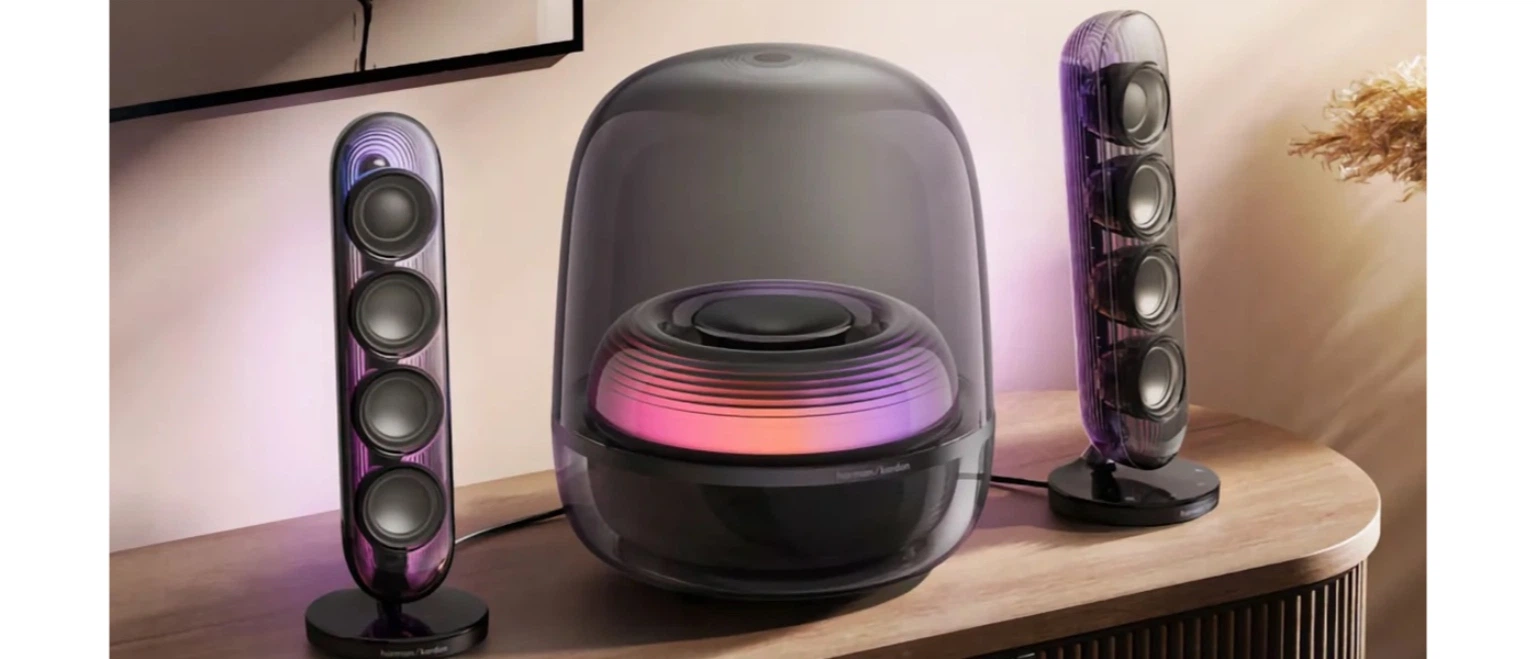 Harman Kardon SoundSticks 5 с фирменным прозрачным куполом и элегантными изгибами придают любому простору вневременную эстетику. Подключенные динамики и сабвуфер формируют динамическое световое шоу: яркие цвета пульсируют в такт музыке, усиливая эмоции и погружая в музыку. Помимо культового дизайна SoundSticks 5 обеспечивает исключительное качество 2.1-канального звука благодаря Bluetooth. Насыщенный бас, детализированные средние частоты и кристально чистые высокие частоты создают гармоничное звучание, идеальное как для спокойных утренних часов, так и импровизированных домашних вечеринок. Однокабельное подключение HDMI ARC гарантирует увлекательный звук для фильмов, потокового медиа и игр. Ощутите непревзойденную акустику Harman Kardon SoundSticks 5 в своем доме.