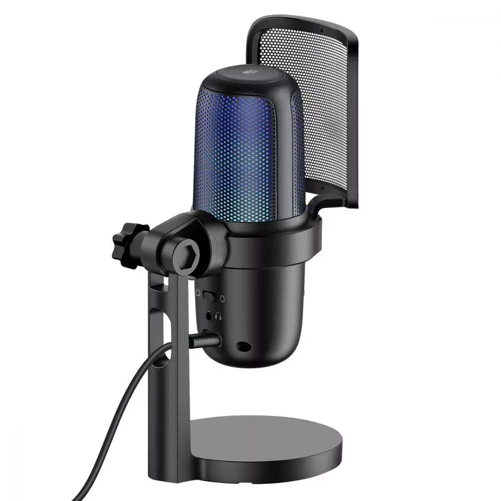 Сенсорный переключатель сверху микрофона отвечает за режим «Mute» – полное отключение звука микрофона. Оснащен процессором SSS1700 и двумя встроенными микрофонами для максимального комфорта.