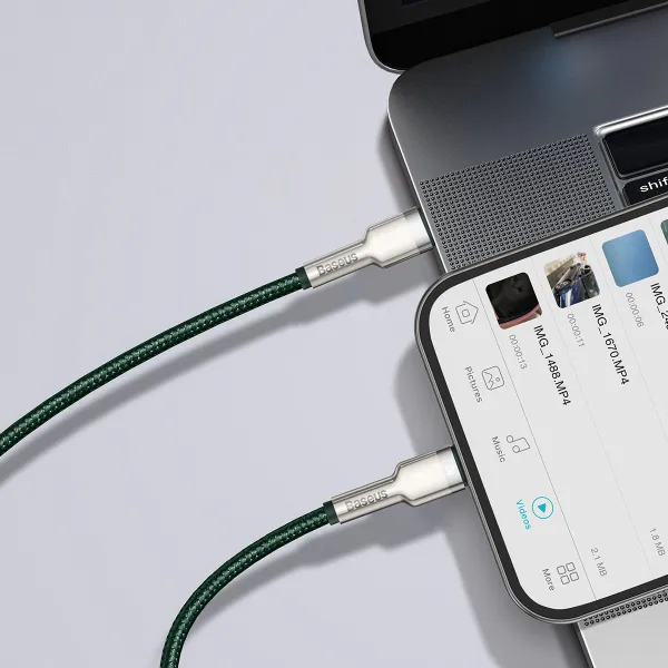 Кабель Baseus Cafule Metal Cable Type-C to Lightning PD 20W 2.4А 1m представляет собой кабель для передачи данных и зарядки смартфонов, планшетов и других мобильных устройств Apple, таких как iPhone, iPad, iPod, AirPods с разъемом Lightning. Нейлоновая оплетка высокой плотности служит надежной защитой от перегибов и повреждений кабеля.