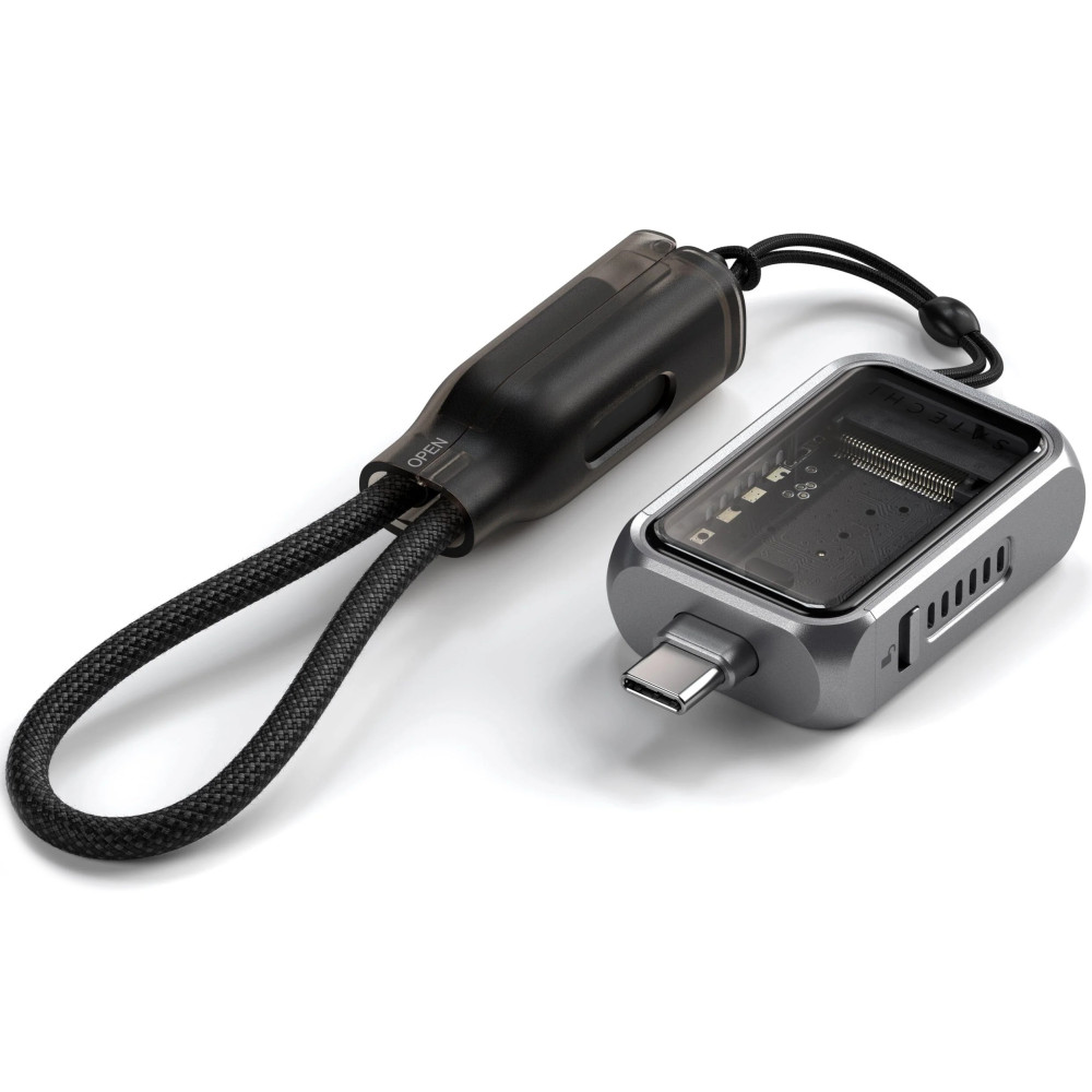 Компактний і легкий корпус містить зручний кабель USB-C в обплетенні, який виконує функцію шнурка. Завдяки збірці без інструментів і силіконовому штифту для надійного захисту вашого SSD він ідеально підходить для подорожей і поїздок на роботу.