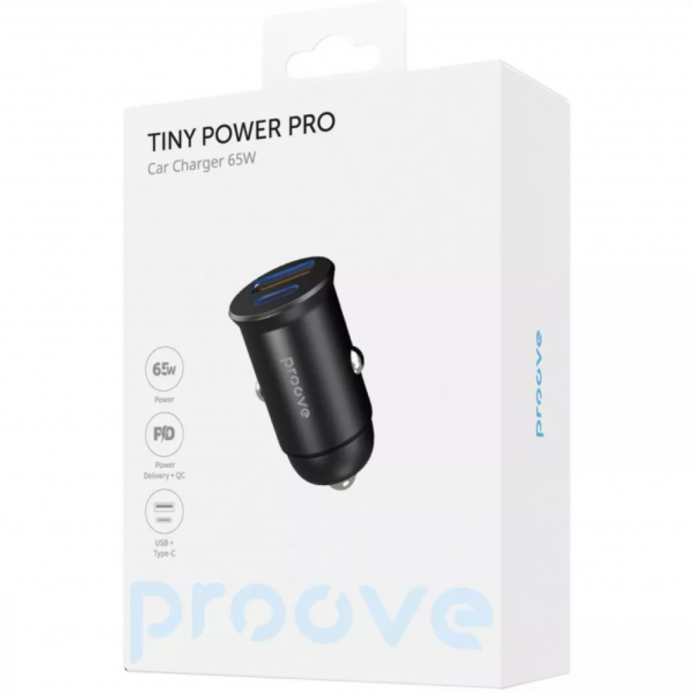Автомобильное зарядное устройство для Proove Tiny Power Pro 65W USB + Type-C, Black