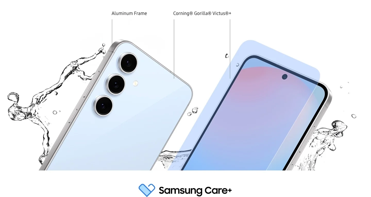Смартфон Galaxy S24 FE создан для максимальной надежности. Его передняя и задняя поверхности защищены стеклом Corning Gorilla Glass Victus+, что гарантирует долгий срок службы устройства. Пыле- и влагозащита по стандарту IP68 подтверждает устойчивость к неблагоприятным условиям.