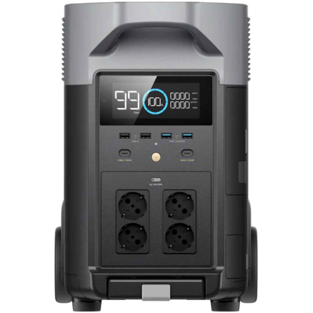 З DELTA Pro ви можете брати з собою додому, куди б ви не пішли. Він має колеса та висувну ручку, як у валізи, що полегшує транспортування. І якщо ви шукаєте повне рішення для живлення для поїздок на автофургонах і пригод на природі, DELTA Pro постачається з портом Anderson на 30 А та розетками змінного струму.